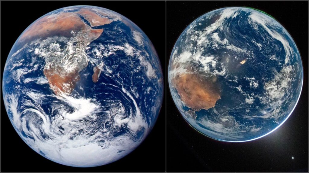 पृथ्वी की दो तस्वीरें-1972 में अपोलो 17; 2026 में आर्टेमिस II : नासा की अधिकारी लाकीशा हॉकिन्स ने कहा कि यह सोचकर ही रोमांच होता है कि इस तस्वीर में हमारे चार अंतरिक्ष यात्रियों को छोड़कर पूरी मानवता दिखाई दे रही है। उन्होंने बताया कि मिशन पूरी तरह से सही दिशा में आगे बढ़ रहा है। फिलहाल यह टीम पृथ्वी से करीब 1.8 लाख किलोमीटर दूर पहुंच चुकी है और तेजी से चांद की ओर बढ़ रही है। अभी उन्हें करीब 2.4 लाख किलोमीटर और सफर तय करना है और वे सोमवार तक चांद के पास पहुंच जाएंगे।